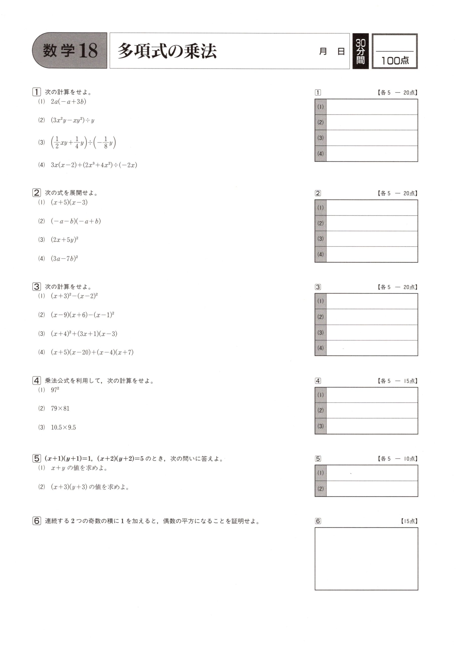 ⑱多項式の乗法 学力テスト対策 数学 2021.08.202021.08.26 スポンサーリンク スポンサーリンク ⑱多項式の乗法の問題はこちら 小さくて見にくいときはこちら ⑱ 多項式の乗法 解答はこちら 学力テスト対策 数学 解答ページ 大問ごとの解説動画1⃣ 大問ごとの解説動画2⃣ 大問ごとの解説動画3⃣ 大問ごとの解説動画4⃣ 大問ごとの解説動画5⃣ 大問ごとの解説動画6⃣