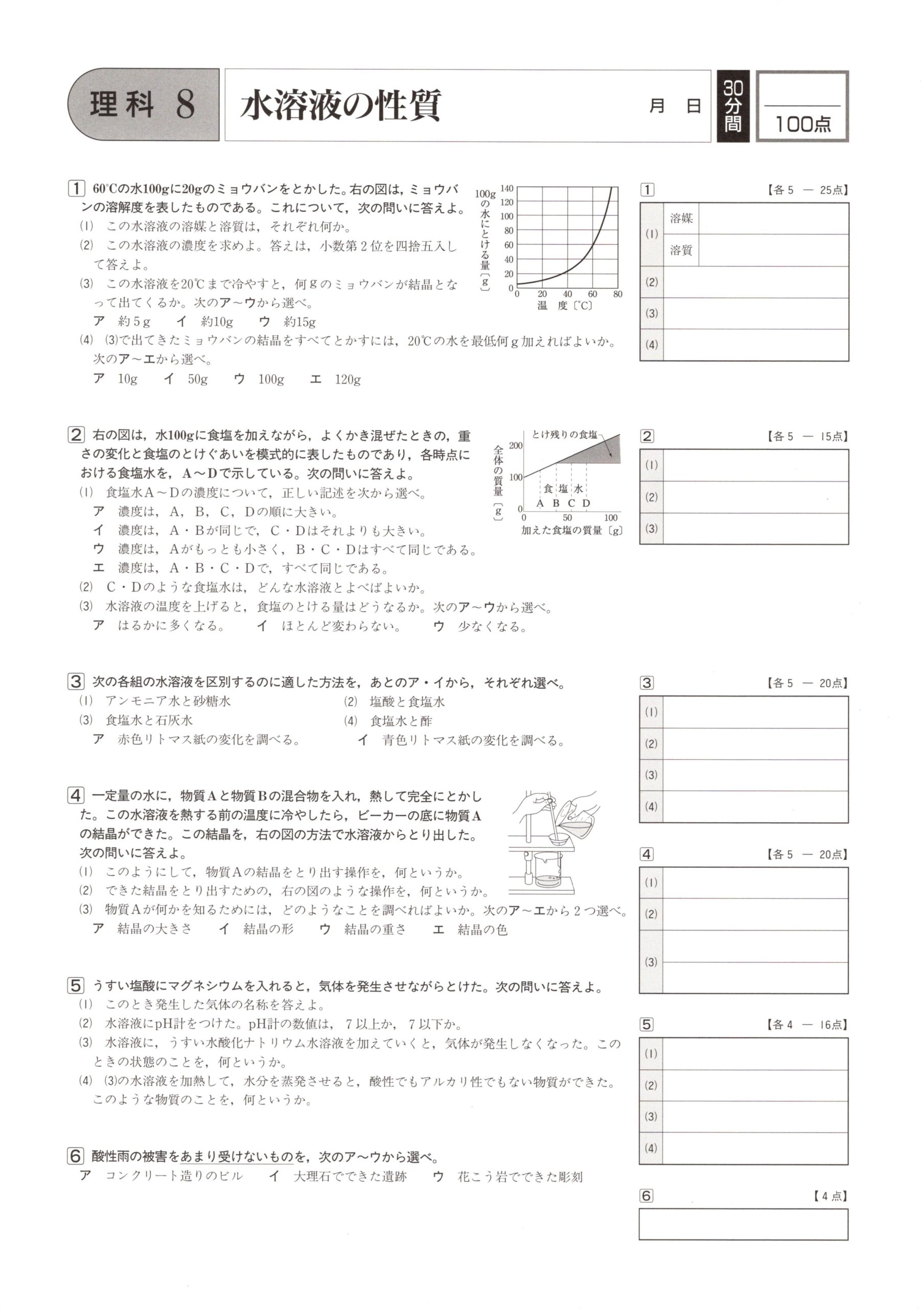 ⑧水溶液の性質 学力テスト対策 理科 2021.08.212021.08.27 スポンサーリンク スポンサーリンク ⑧水溶液の性質の問題はこちら 小さくて見にくいときはこちら 8 水溶液の性質 解答はこちら 学力テスト対策 理科 解答ページ