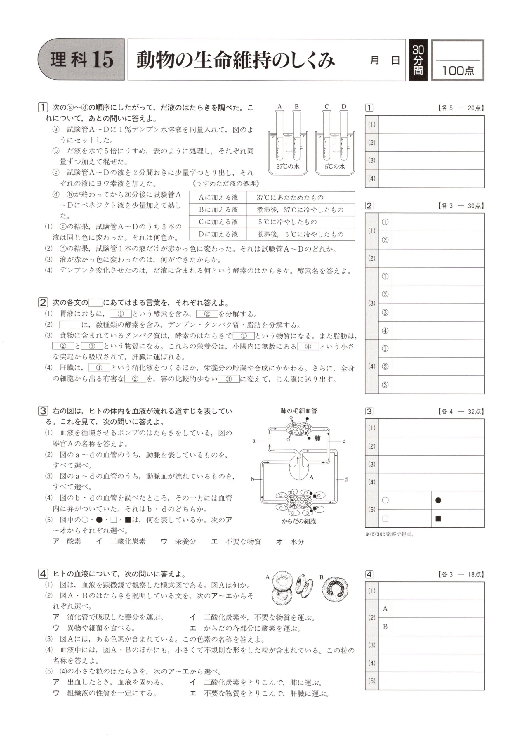 ⑮動物の生命維持のしくみ 学力テスト対策 理科 2021.08.212021.08.27 スポンサーリンク スポンサーリンク ⑮動物の生命維持のしくみの問題はこちら 小さくて見にくいときはこちら 15 動物の生命維持のしくみ 解答はこちら 学力テスト対策 理科 解答ページ