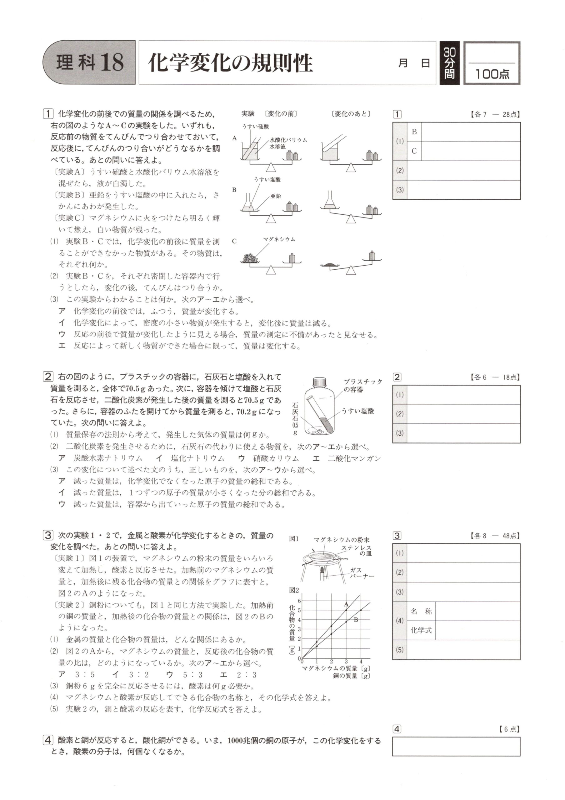 ⑱化学変化の規則性 学力テスト対策 理科 2021.08.212021.08.27 スポンサーリンク スポンサーリンク ⑱化学変化の規則性の問題はこちら 小さくて見にくいときはこちら 18 化学変化の規則性 解答はこちら 学力テスト対策 理科 解答ページ