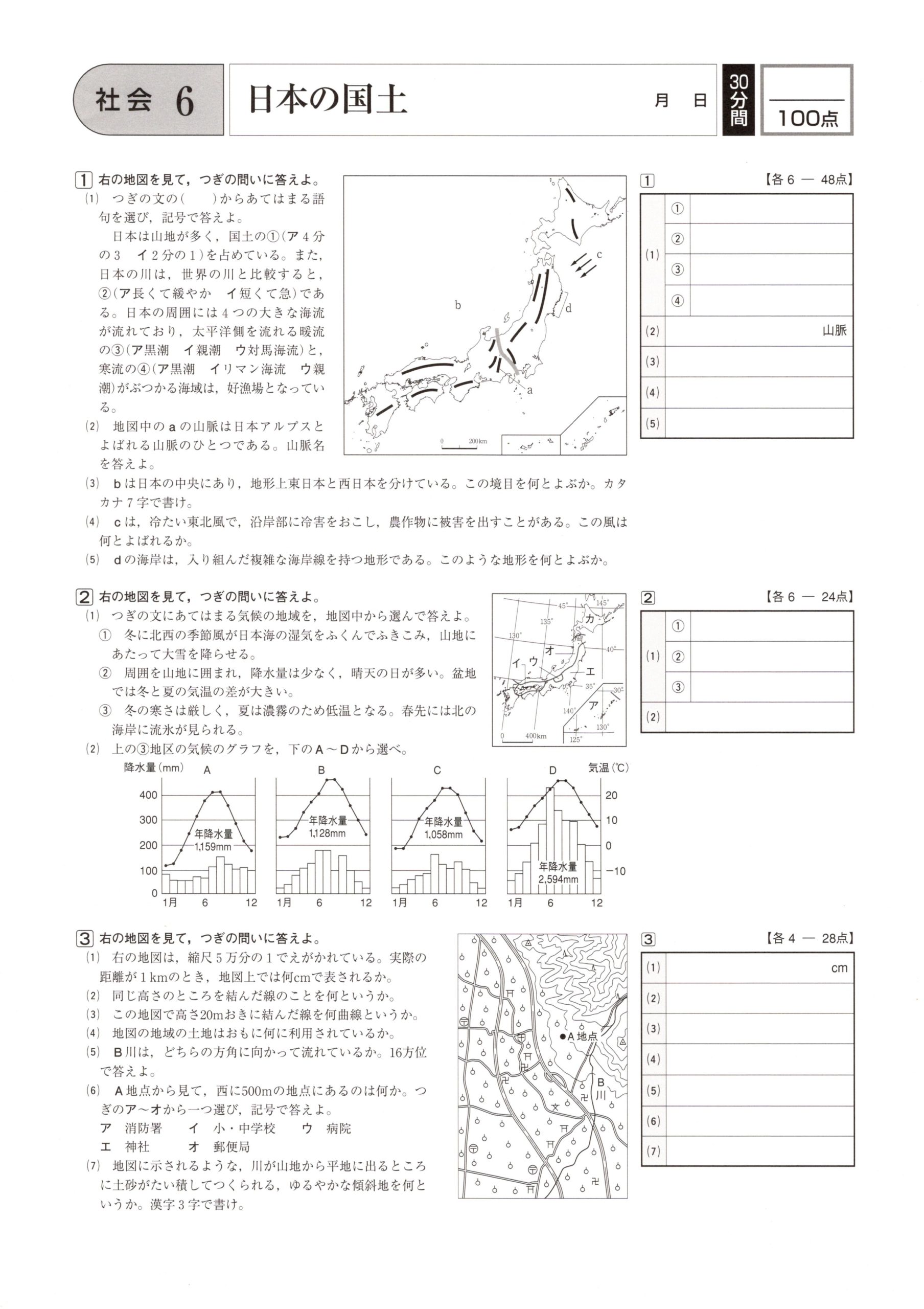 ⑥日本の国土 学力テスト対策 社会 2021.08.212021.08.27 スポンサーリンク スポンサーリンク ⑥日本の国土の問題はこちら 小さくて見にくいときはこちら 6 日本の国土 解答はこちら 学力テスト対策 社会 解答ページ