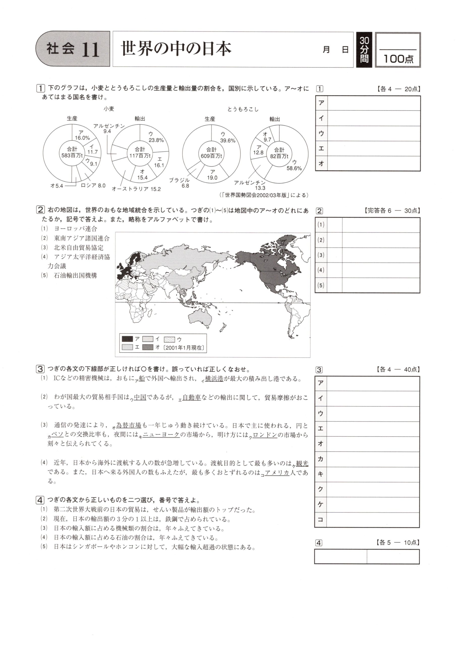 ⑪世界の中の日本 学力テスト対策 社会 2021.08.212021.08.27 スポンサーリンク スポンサーリンク ⑪世界の中の日本の問題はこちら 小さくて見にくいときはこちら 11 世界の中の日本 解答はこちら 学力テスト対策 社会 解答ページ