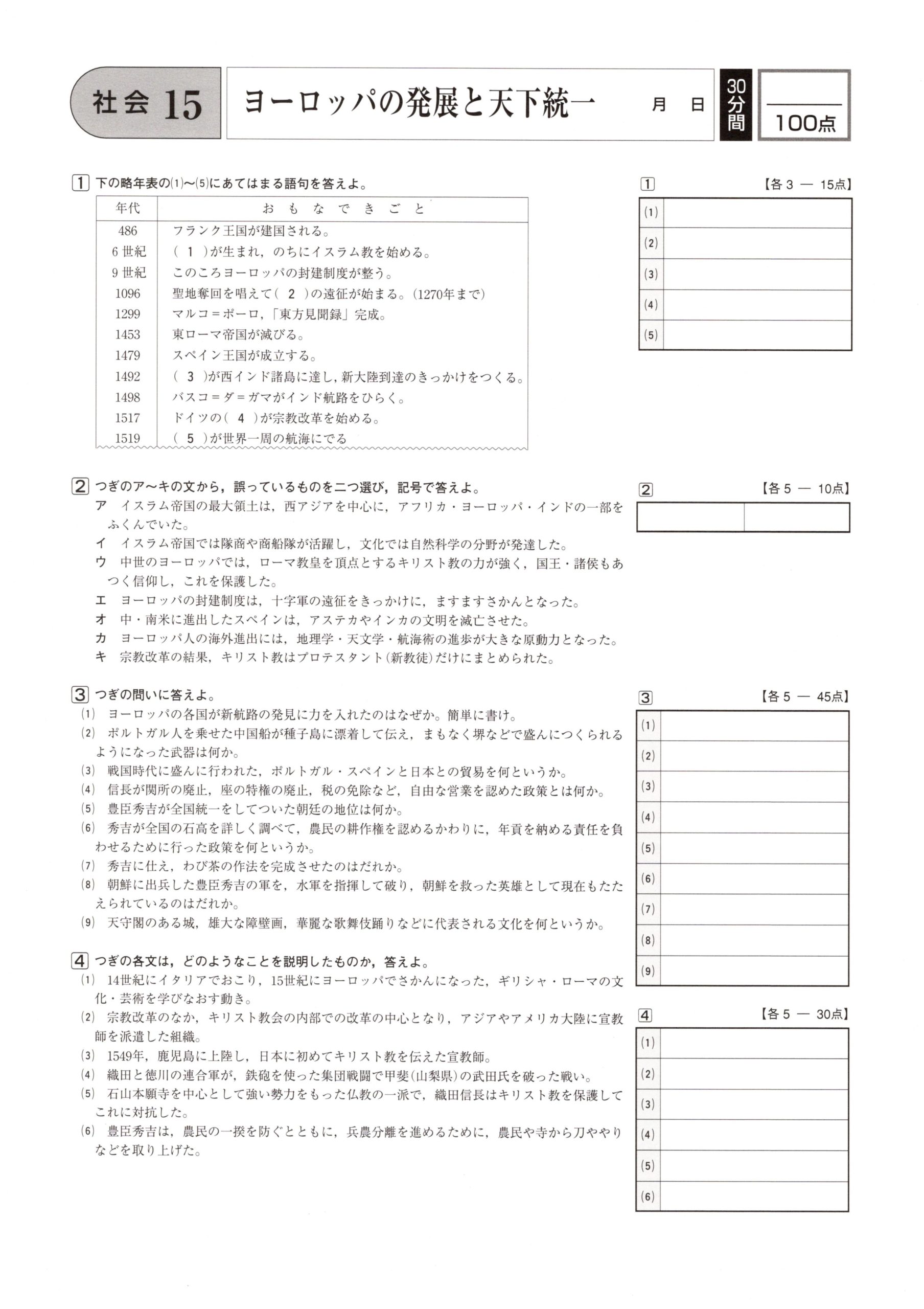 ⑮ヨーロッパの発展と天下統一 学力テスト対策 社会 2021.08.212021.08.27 スポンサーリンク スポンサーリンク ⑮ヨーロッパの発展と天下統一の問題はこちら 小さくて見にくいときはこちら 15 ヨーロッパの発展と天下統一 解答はこちら 学力テスト対策 社会 解答ページ