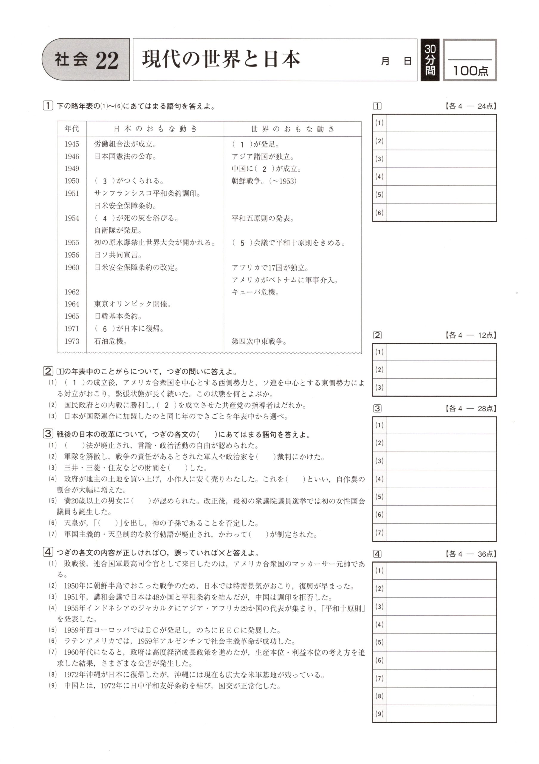 ㉒現代の世界と日本 学力テスト対策 社会 2021.08.212021.08.27 スポンサーリンク スポンサーリンク ㉒現代の世界と日本の問題はこちら 小さくて見にくいときはこちら 22 現代の世界と日本 解答はこちら 学力テスト対策 社会 解答ページ