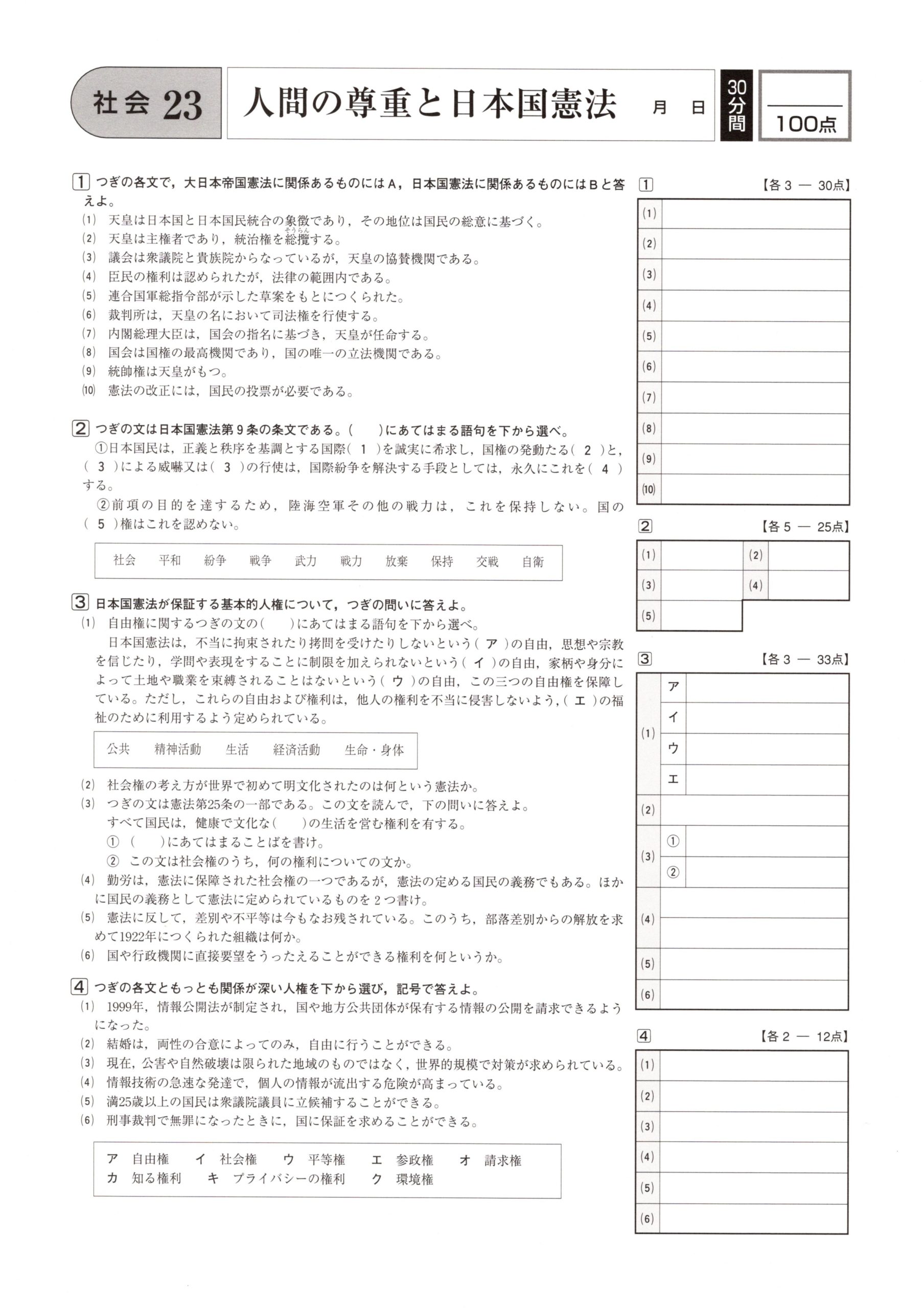 ㉓人間の尊重と日本国憲法 学力テスト対策 社会 2021.08.212021.08.27 スポンサーリンク スポンサーリンク ㉓人間の尊重と日本国憲法の問題はこちら 小さくて見にくいときはこちら 23 人間の尊重と日本国憲法 解答はこちら 学力テスト対策 社会 解答ページ