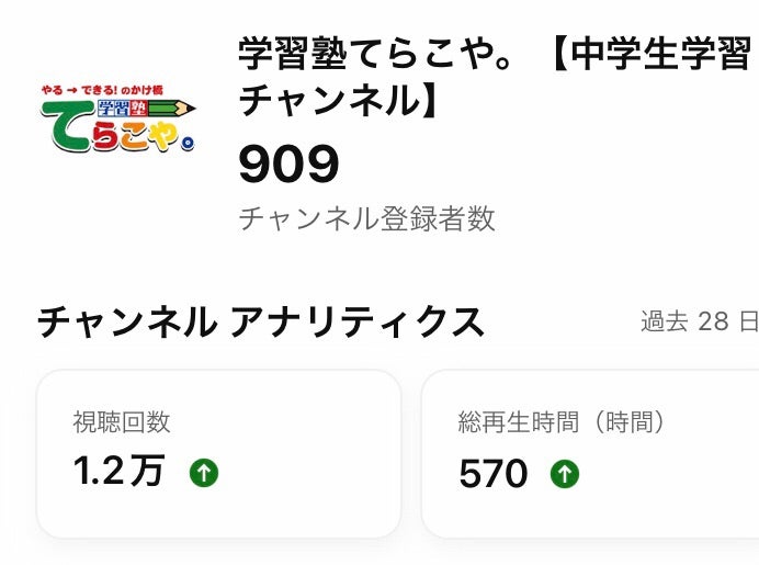 学習塾てらこや。のYouTubeチャンネルの登録者数が900人を突破できました!!