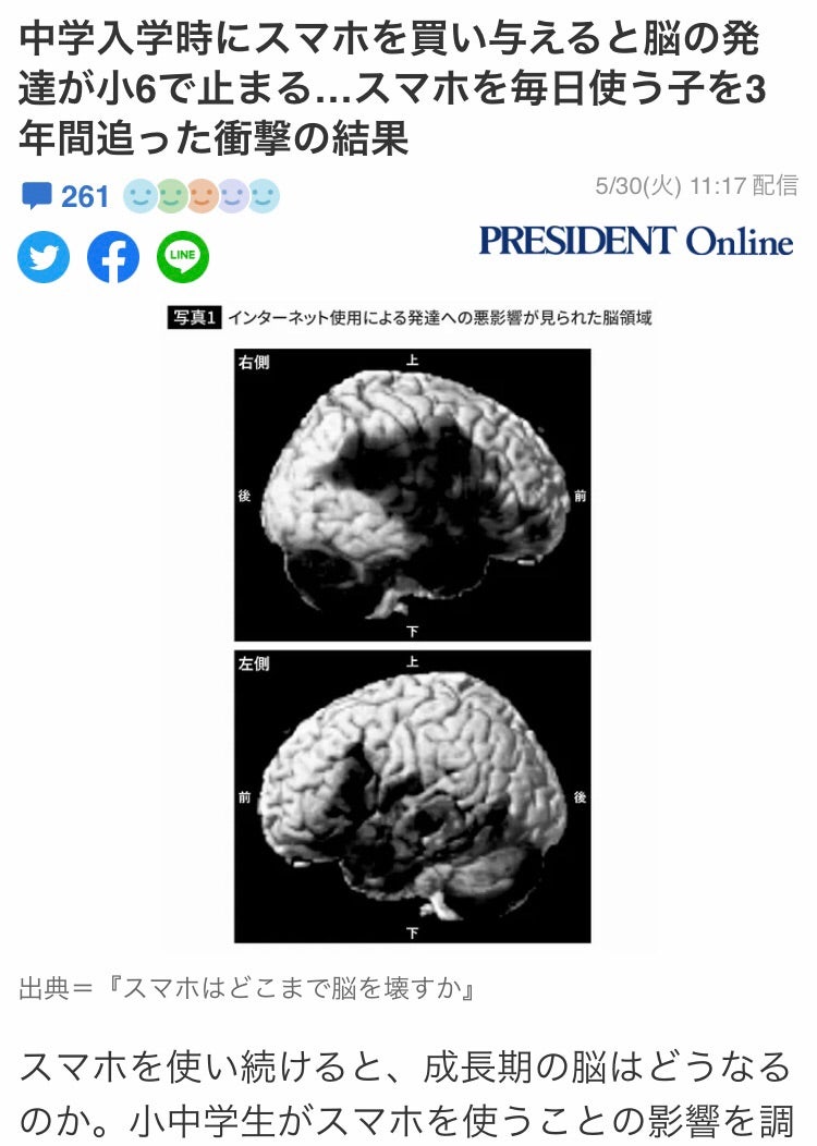 でも、この記事によれば、時間を無駄に使ってしまう、ということ以外にそもそも脳が発達しない、という恐ろしいことが書いてありました。